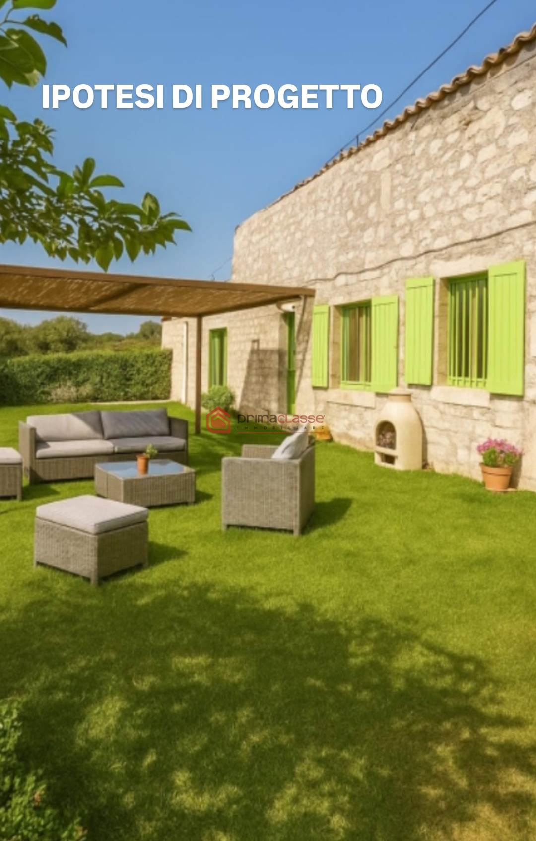The rustic house covers an area of 300 sqm, spread over a single level. It includes a large living room, a kitchen, two bedrooms, and a bathroom. The property is surrounded by a land of about enriched by fruit trees and ancient olive trees. Furthermore, there is the possibility of building a swimming pool to fully enjoy the beautiful summer days.