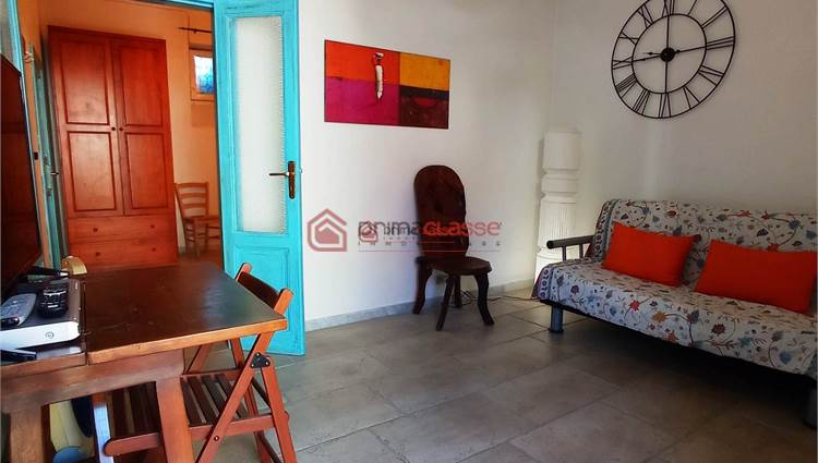 Upper floor: apartment consisting of entrance, kitchenette, living room, bedroom, and bathroom.