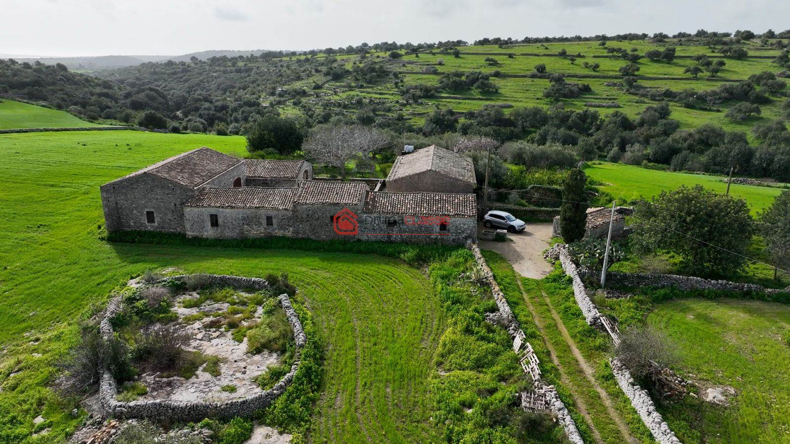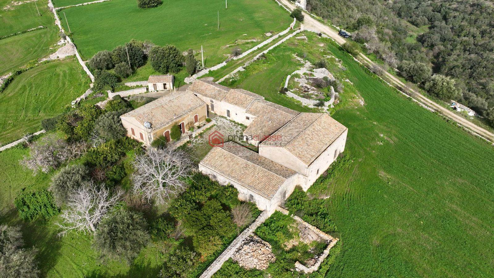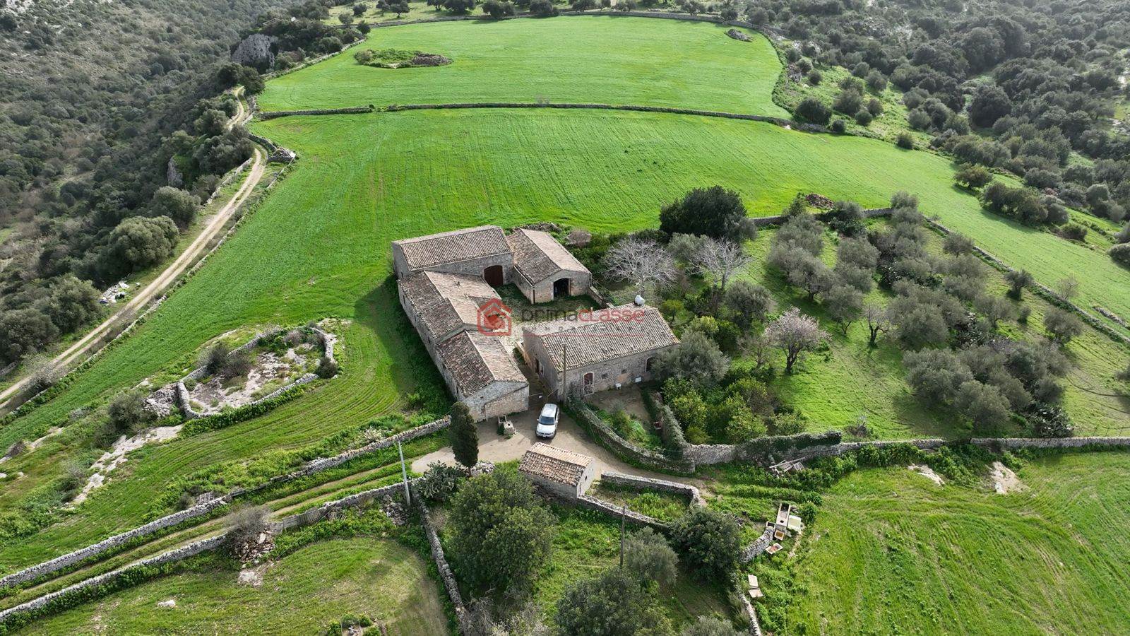 La tenuta è dotata di pozzo trivellato con tre grandi cisterne, garantendo un’ottima autonomia idrica, ed è arricchita dalla presenza di alberi di ulivo e carubbi, che completano il paesaggio rurale tipico della Sicilia più autentica.